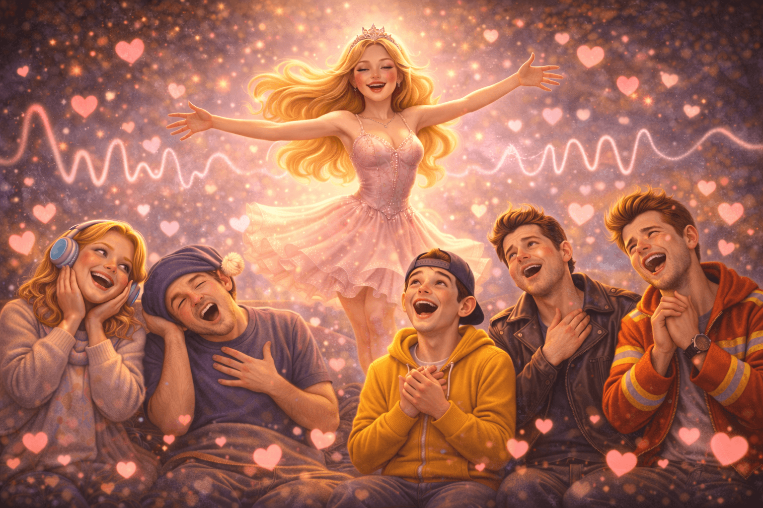 Oxytocine zelf lijkt te zweven, haar armen uitgestrekt als uitnodigende omhelzingen. Ze omarmt elke gedachte met liefdevolle knuffels, terwijl Serotonine (Sero) glimlachend uitroept: "Oxy, je maakt alles zo vredig en sereen. Ik voel me omringd door jouw liefdevolle omhelzing."